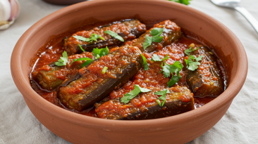 A Taste of Tradition: Bademjan Borani – Stewed Baked Eggplants in Tomato Garlic Sauce